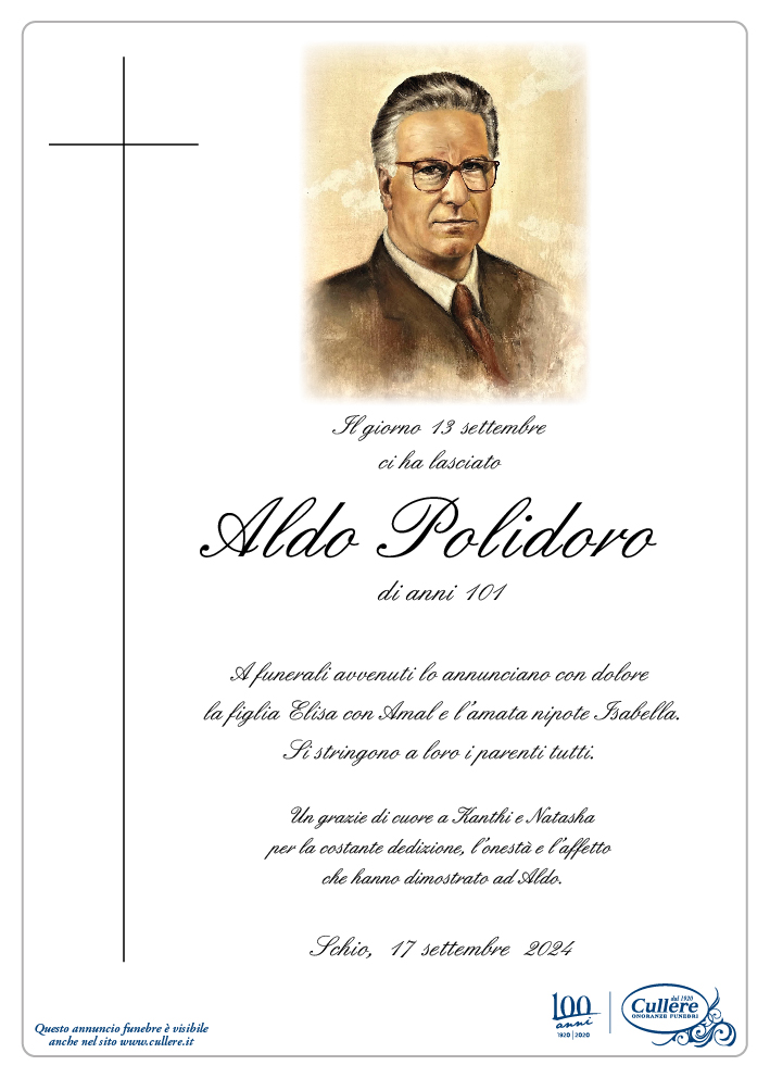 Scrivi il tuo messaggio, sarà nostra cura consegnarlo ai congiunti di Aldo Polidoro.