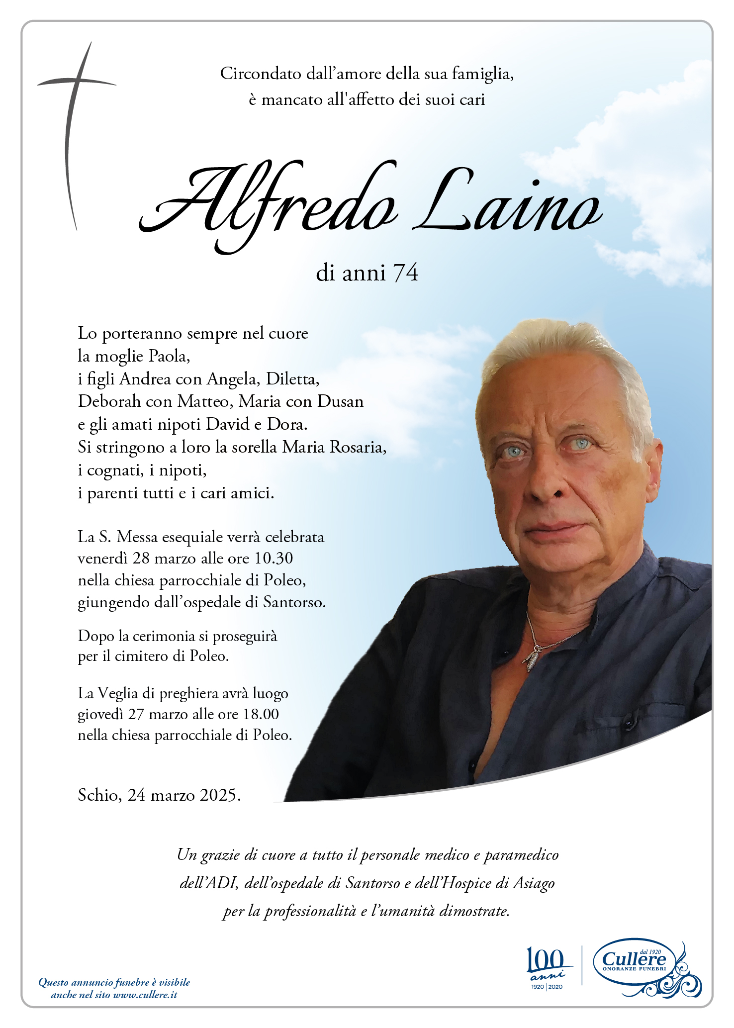 Write your message, it will be our responsibility to deliver it to any relatives of Alfredo Laino.
