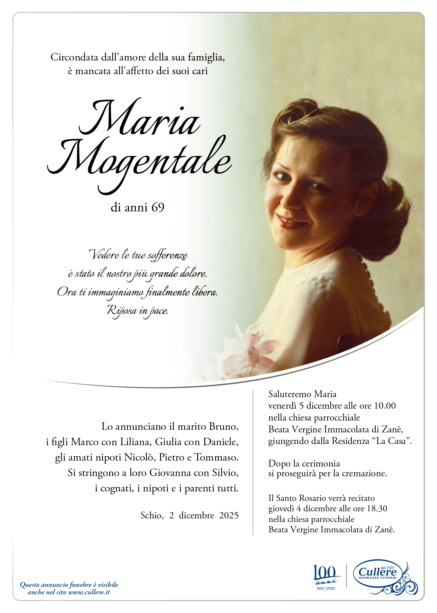 Write your message, it will be our responsibility to deliver it to any relatives of Maria Mogentale.